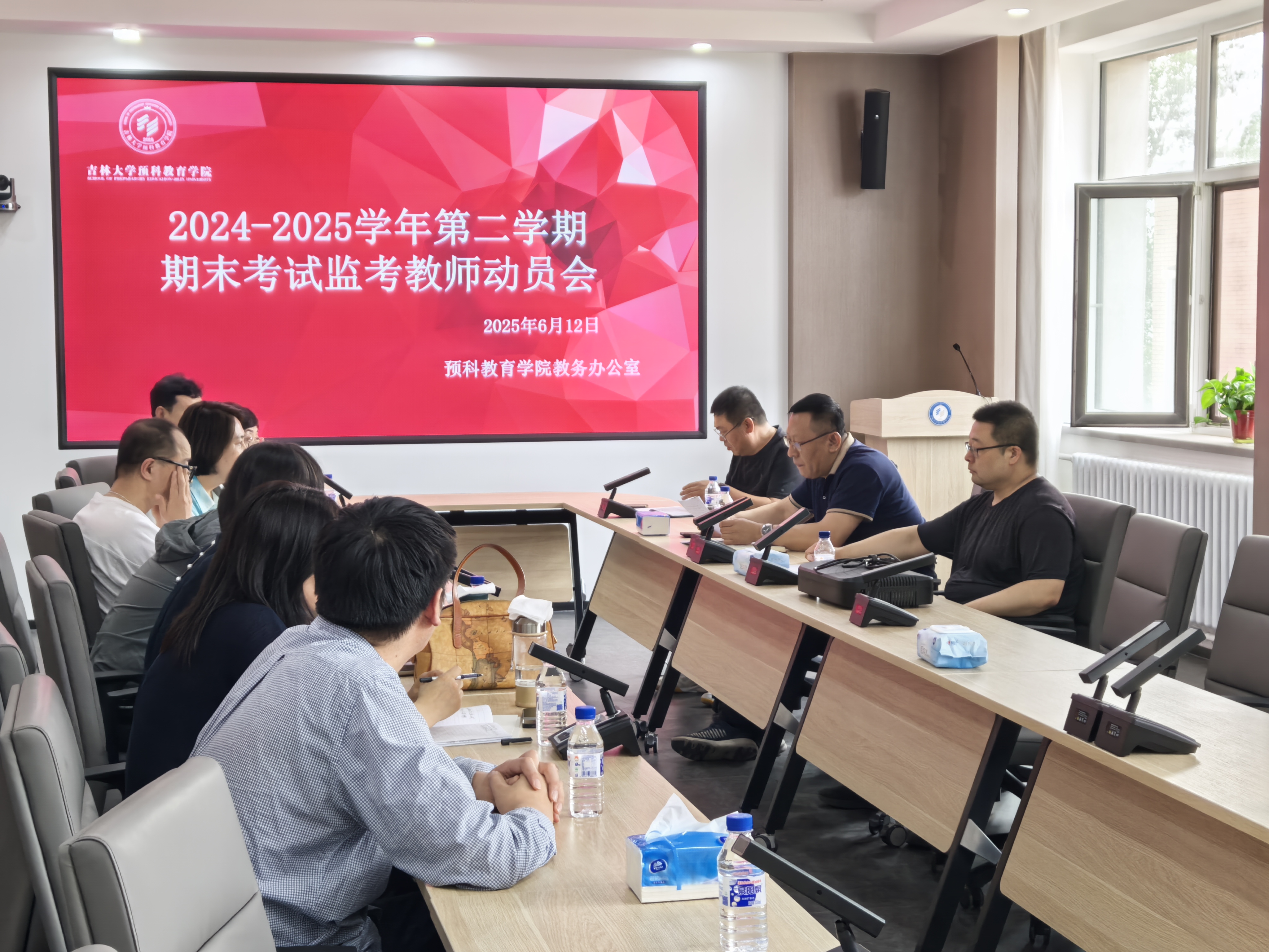 2024-2025学年第二学期期末考试即将举行。为深入贯彻立德树人根本任务,严肃考试纪律、端正学风教风,切实营造风清气正的考试环境,学院于2025年6月12日下午13:30在413会议室召开“2024-2025学年第二学期期末考试监考教师动员会”。会议由学院教学副院长周伟主持,各预科教学研究室主任参加。