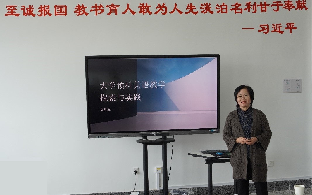 文珍玉副教授多年来一直从事大学英语的教学工作,教学经验丰富,深受学生欢迎,她本次分享主题是“大学预科英语教学的探索与实践”。她首先从显性和隐性两个方面,分析了预科学生英语基础的差异,即显性差异表现在学生的英语高考成绩差别很大,隐性差异体现在英语综合技能方面的差异大。针对学生存在的差异性,她提出了“预补结合”的教学策略,在完善基础知识,帮助学生树立学习自信的同时,培养自主学习能力,帮助学生有效地完成大学英语的学习。在教学实践中,文老师采用了循序渐进式、协作学习式的教学方法,针对预科学生特点,注重基础性和应用性,实用性和交流性,逐步提高学习难度,创造一个轻松活跃、互动丰富、充满挑战的学习环境,鼓励学生实践英语语言,帮助学生建立英语学习的成就感。文老师还十分重视个性化教学,她通过组建学习群,辅导基础薄弱的学生,同时又为基础较好的学生创造持续发展的空间。最后,文老师展示了所教学生英语课程的学习成果,可以看到学生在口语、写作等方面都取得了显著的进步。