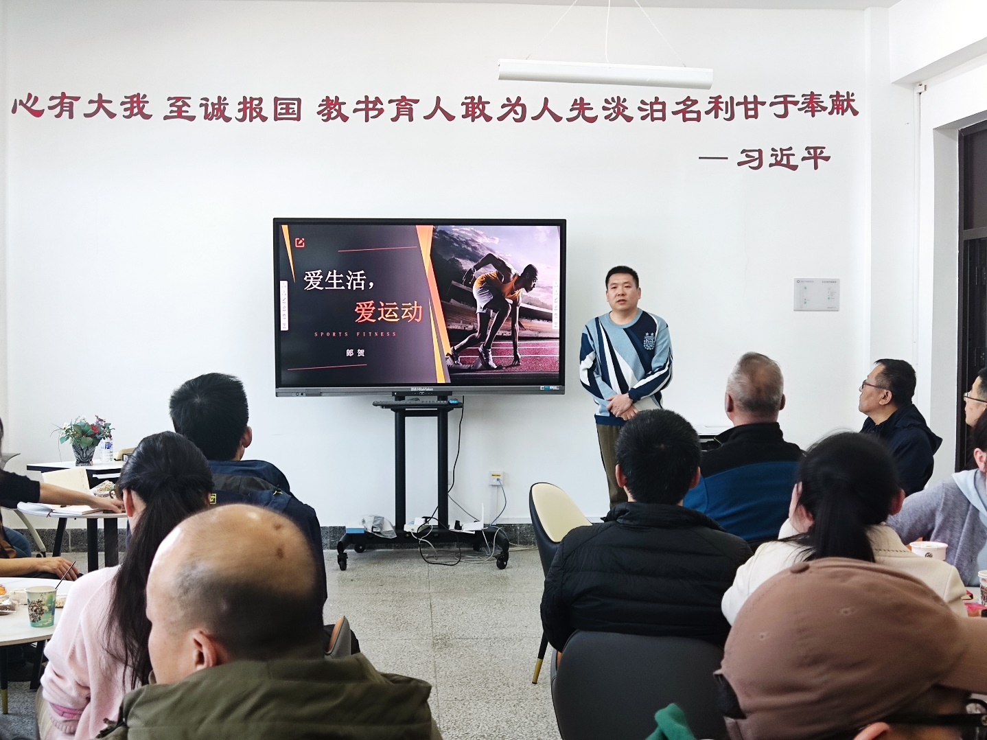 在运动与饮食方面,郎贺建议教师们在日常生活中要注重营养均衡,合理搭配饮食与运动,以达到最佳的健康效果。他还特别强调,运动应该融入生活的每一个角落,成为一种生活方式。为了让大家更好地实践这一理念,郎贺副教授还介绍了一些简单易行的居家锻炼方法,如瑜伽、健身操、力量训练等,鼓励大家在忙碌的工作之余,也能抽出时间进行锻炼。